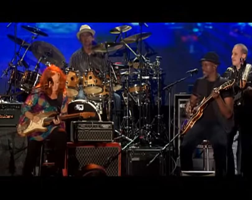 Bonnie Raitt’s reputation as a slide guitarist is central to the performance. Her technique is precise yet expressive, combining controlled phrasing with a tone that remains warm and resonant. In this setting, her playing does not seek to dominate the arrangement. Instead, it creates space for dialogue, allowing each phrase to connect with the underlying rhythm rather than overwhelm it. This approach reflects a broader characteristic of her career, where technical skill is consistently aligned with musical restraint.