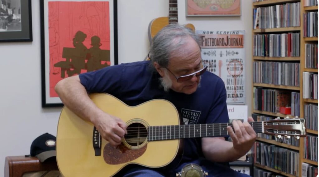 Lindley’s interpretation in the Fretboard Journal office carries the relaxed authority of a musician deeply familiar with the traditions of American songwriting. Even with a guitar he had never previously encountered, he quickly settles into the instrument, shaping the chords and melody with a fluid and expressive touch.