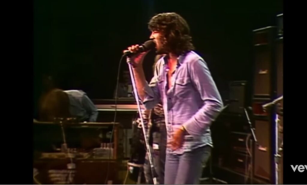 Filmed during a concert at Hofstra University in New York, the performance provides more than a simple live rendition. It presents a band operating at full creative force, still close to the event that inspired the song itself. “Smoke On The Water” was written in response to the fire that destroyed the Montreux Casino in 1971 during a concert involving Frank Zappa. That incident, retold almost journalistically in the lyrics, becomes something even more immediate in this live setting. The band is not revisiting distant history. They are reliving a recent and defining experience.