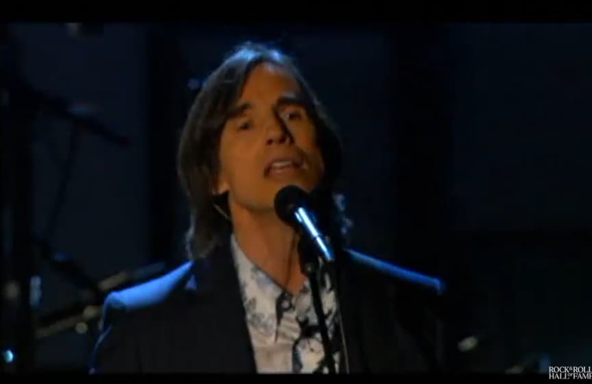 Opening with “The Pretender,” Browne delivered a performance that felt especially resonant in the Hall of Fame setting. Released in 1976, the song is widely regarded as one of his most incisive statements on modern life, questioning conformity, material ambition, and the quiet compromises people make as they move through adulthood. On stage in 2004, the song sounded less like a product of the 1970s and more like a timeless reflection on identity and purpose. Its presence at the ceremony underscored why Browne has long been viewed as a songwriter who looks beyond success and asks uncomfortable, necessary questions.