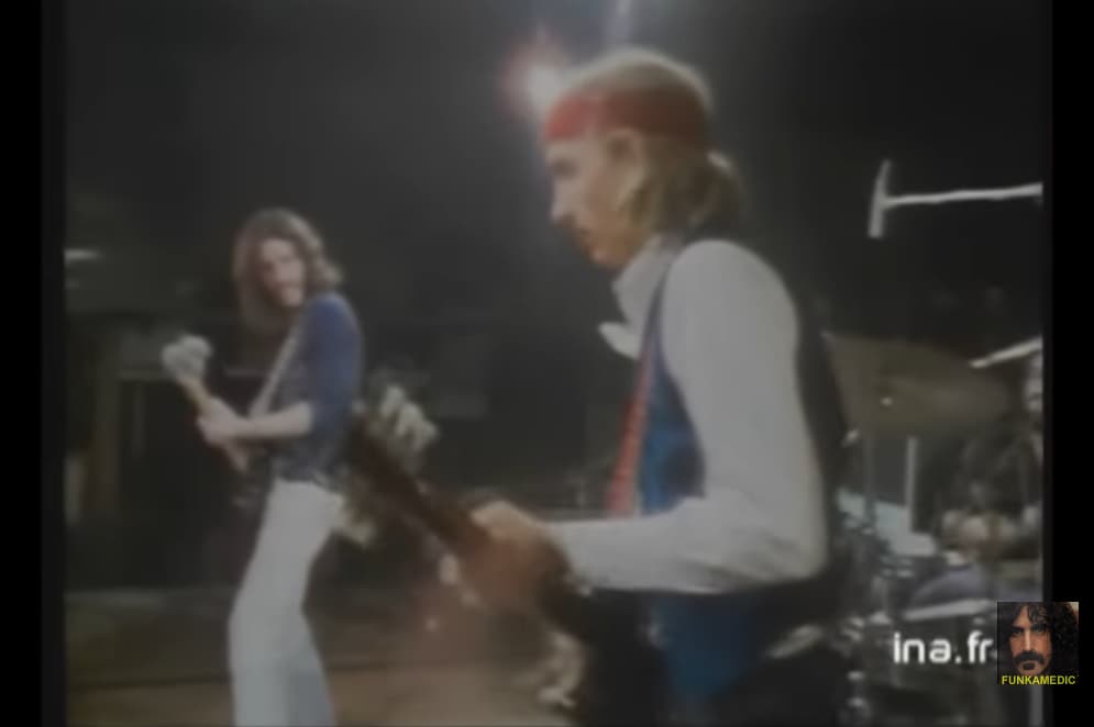 The visual presentation typical of European music television at the time enhances the impact. Without elaborate staging or effects, the focus remains entirely on performance. This directness allows the viewer to observe the mechanics of the music itself, from the precision of the rhythm section to the physicality of Walsh’s playing.