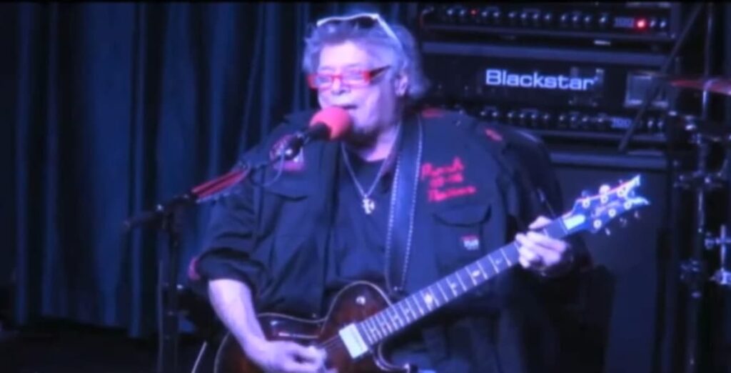 The performance by the Leslie West Trio as captured on video shows West approaching the song with both reverence and individual expression. His guitar tone remains full and vocal, shaped by a lifetime of experience with blues, rock, and improvisational phrasing. Rather than seeking technical flash, West focuses on musical statements that serve the song itself. Each bend, sustained note, and rhythmic turn feels purposeful, and his playing reflects a deep connection to the material.