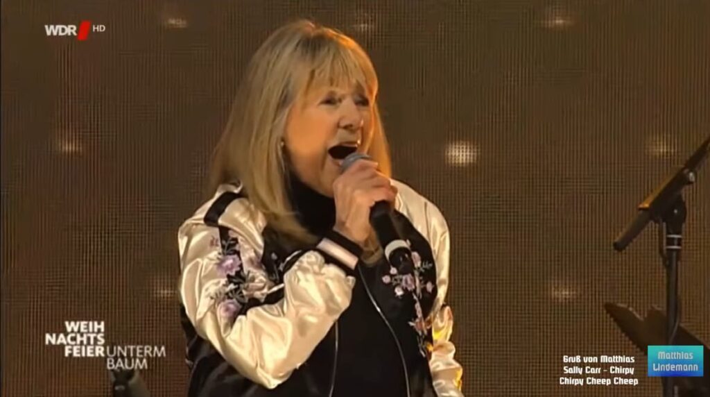 On December 11, 2016, Sally Carr, the unmistakable voice behind one of the most recognizable pop songs of the early 1970s, stepped back into the spotlight with a live performance of “Chirpy Chirpy Cheep Cheep” during Weihnachtsfeier unterm Baum, a festive Christmas celebration event. The performance offered audiences a warm and nostalgic reminder of a song that once defined an era of carefree, melodic pop.