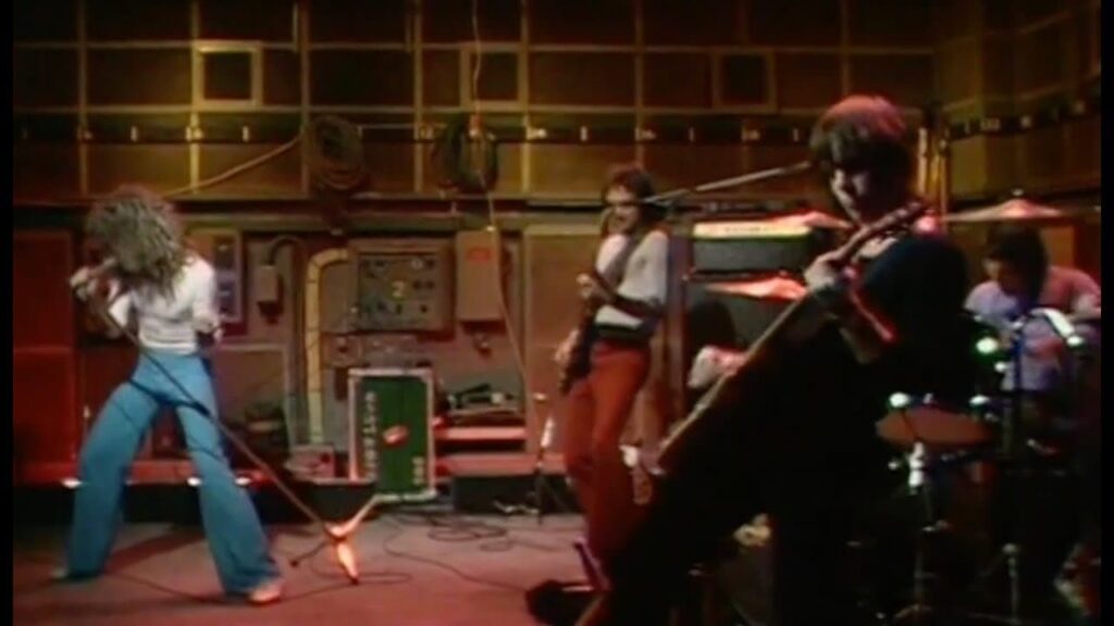 The band took the studio stage at Pres B, a compact BBC performance space in West London, as part of the show’s third season. That night Montrose presented two tracks drawn from their already acclaimed debut album, recorded just months earlier. The set opened with “Bad Motor Scooter,” a raw, high-energy rocker written by Hagar that had become a signature part of the group’s identity. This song features Ronnie Montrose’s inventive sliding guitar work designed to evoke the sound of a revving engine, and Hagar’s assertive vocal delivery helped establish him as a commanding presence in hard rock.