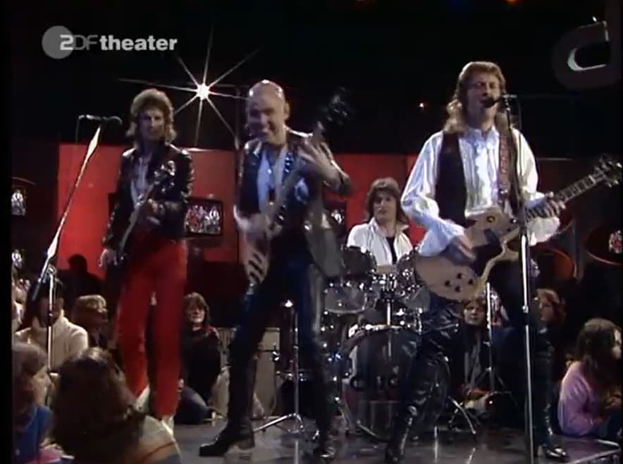 The German television performance reflects this confidence clearly. Noddy Holder delivers the vocals with the same unmistakable grit and conviction that had defined Slade since their breakthrough years. Dave Hill’s guitar work is sharp and direct, rooted in traditional rock and roll phrasing rather than contemporary trends. Jim Lea and Don Powell provide a solid rhythmic foundation that keeps the performance tight and energetic without excess polish. The presentation is straightforward, placing the focus firmly on the music rather than visual spectacle.