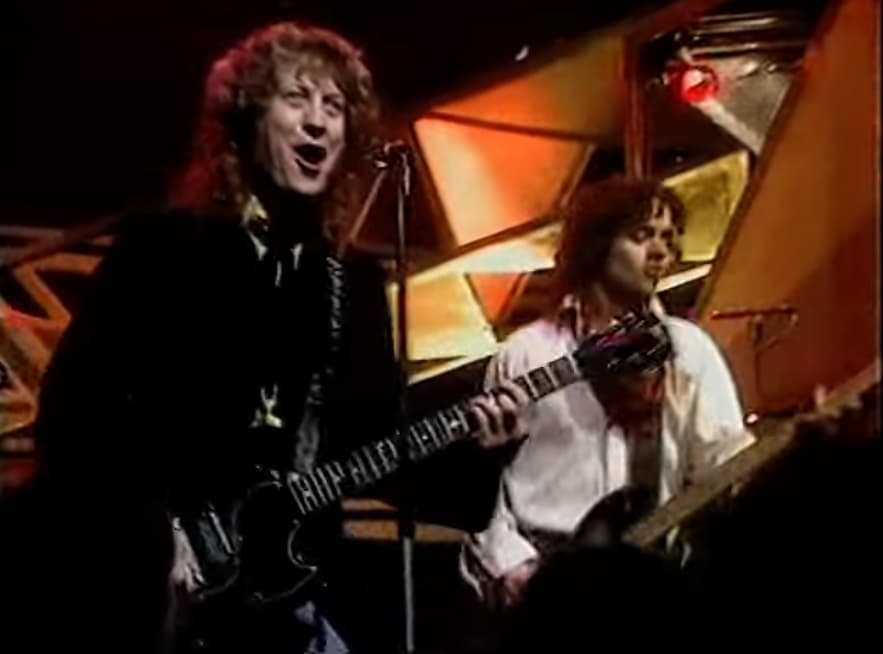 The rhythm section played a crucial role in translating the song’s live spirit to television. Jim Lea’s bass provided both structure and urgency, while Don Powell’s drumming maintained a steady and emphatic drive. Together, the band presented a tight and unified performance that reflected their years of experience on stage.