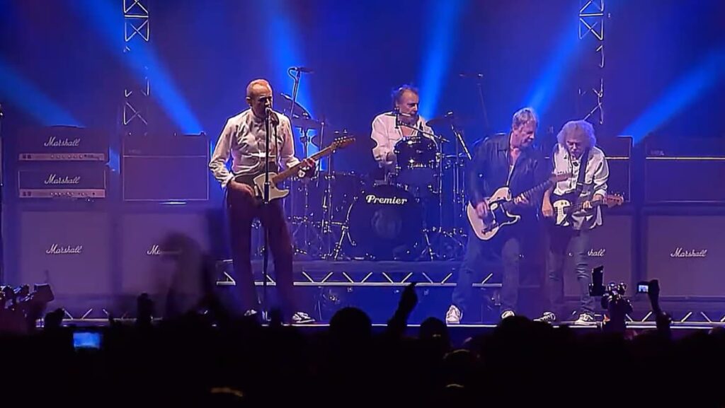At the front of the stage, Rossi and Parfitt delivered the trademark twin guitar assault with absolute conviction. Their interplay was sharp and urgent, powered not by nostalgia but by mutual understanding built over years of shared musical history. The famous Quo rhythm felt heavier and more aggressive than in later lineups, a direct result of the original quartet’s uncompromising approach.