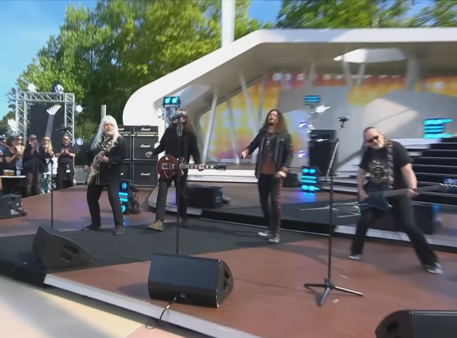 What makes this performance compelling is not nostalgia alone, but continuity. Sweet performing “Ballroom Blitz” in 2025 is not an act of preservation but of assertion. The song was always about momentum, about disorder turned into spectacle, about the moment when control is lost and reclaimed through volume and rhythm. On ZDF Fernsehgarten, that same spirit pulses through the familiar opening shout and the instantly recognizable stop start structure that still feels dangerous in its precision. The band does not soften the song for modern sensibilities. Instead, they lean into its theatrical aggression, reminding the audience that glam rock was never about polish alone, but about confrontation and release.