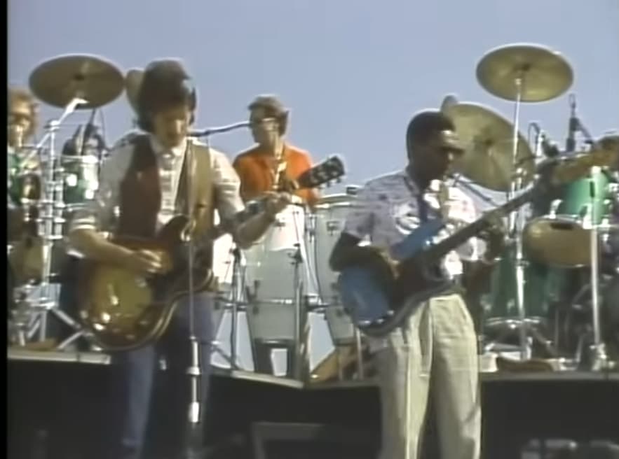 The supporting lineup played a crucial role in translating the song to the stage. Patrick Simmons and John McFee provided clean and tasteful guitar work that blended seamlessly into the arrangement. Willie Weeks delivered a fluid and controlled bass performance, locking tightly with the dual drum presence of Chet McCracken and Keith Knudsen. Percussionist Bobby LaKind added rhythmic color that enhanced the groove without drawing attention away from the song itself. Cornelius Bumpus contributed additional depth with his instrumental and vocal support, reinforcing the band’s rich live sound.