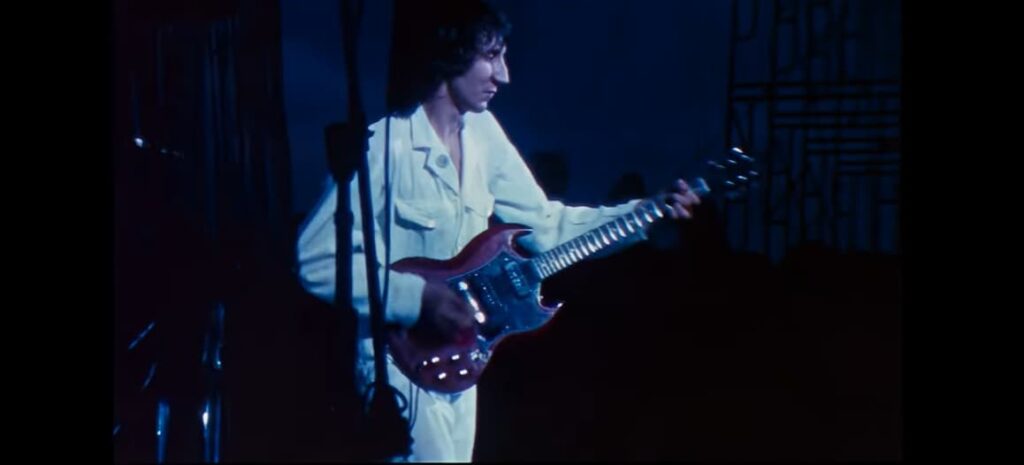 From a technical perspective, the band’s control over dynamics is striking. Keith Moon maintains a volatile but responsive rhythm, adapting to Townshend’s shifting tempo, while John Entwistle reinforces the harmonic structure with a bass approach that often mirrors lead guitar phrasing rather than traditional support. Roger Daltrey, though less central in this specific passage, anchors the performance with a presence that reflects the band’s growing command of large scale audiences.