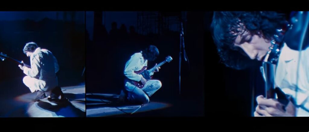 This segment, often referred to by fans as the “Pete solo ending,” unfolds at a transitional moment both musically and culturally. The band had already pushed through a demanding overnight set, yet what emerges here is not fatigue but precision. Townshend’s chord progression aligns almost uncannily with the first visible hints of daylight, creating a natural synchronization between sound and environment. It is not merely a performance but a moment shaped by circumstance, where the rising sun becomes an unplanned yet integral part of the stage design.